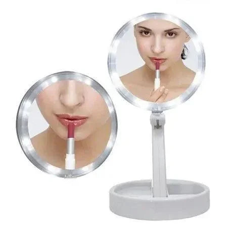 Ideal para mulheres que desejam retocar a maquiagem ou arrumar o cabelo em qualquer lugar. Espelho de Luz LED Dobravel Aumenta 10x Maquiagem Portátil | MadeiraMadeira
