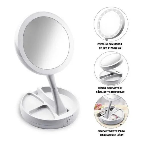 Espelho De Luz Led Dobravel Aumenta 10x Maquiagem Portátil - CELA - Espelho  para Maquiagem / de Aumento - Magazine Luiza
